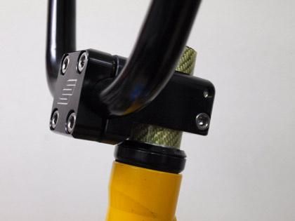 フロントフォークは通常はイエローフォークですがブラックのフルアルミフォークに交換済。ちょっとマニアック