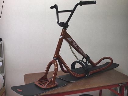 SNOWSCOOT(R)の軽量アルミフレーム&フォーク STYLEのオリジナル塗装新古フレームにコンディションの良いONEボードを組み合わせたかなりオトクな一台。