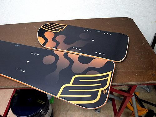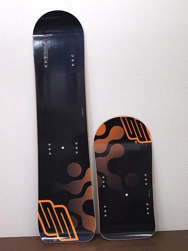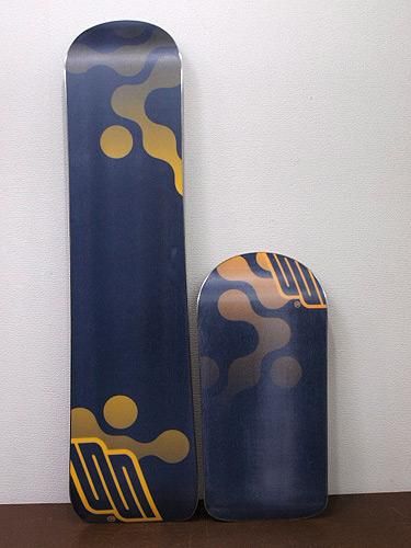 このYボードセットはフロントボード、リアボードともにタイプGという太めのシェイプの組み合わせ。一言でいうと、ビギナーモデルの細身ボードよりは太く、安定感がありパウダーからカービングまでパワフルな滑りが出来ます