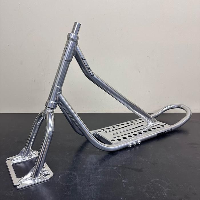 珍しいノーマルサイズの軽量Aフレーム、トップチューブの曲げがあるのでライディングポジションの自由度があり転倒時も足へのダメージが減ります。