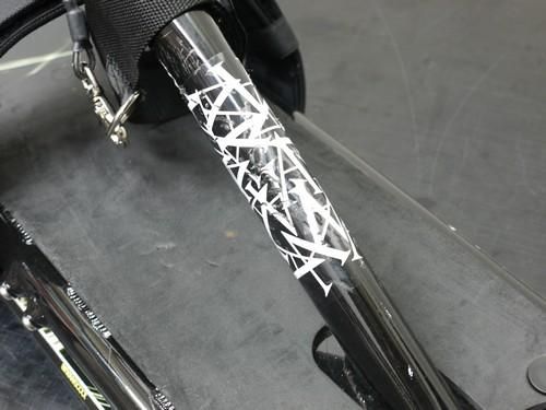 トップチューブ足元にブーツの金具で付いた傷があります。テール部には引っかき傷あり。
