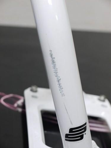 フォークレッグに長さ3センチぐらいの塗装の剥がれ、トップチューブにいくつかの塗装の剥がれがあります。